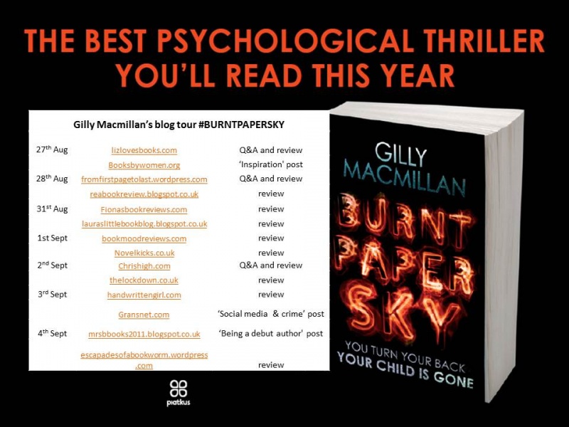 (Burnt Paper Sky by Gilly MacMillan is published by Piatkus, 27th August 2015. Thank you to Piatkus for the review copy. This book is available in paperback and as an e-book and is available to buy in most major bookshops. Click to view at The Book Depository, Click to view at Amazon UK and click here to view on iTunes.)