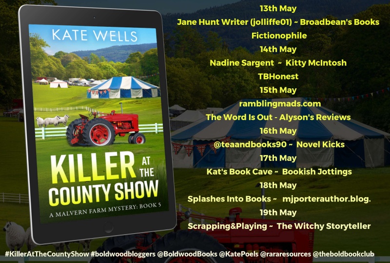 I’m so pleased to be welcoming Kate Wells back to Novel Kicks and the blog tour for her latest book, Killer at the County Show – book five in the Malvern Mysteries series.